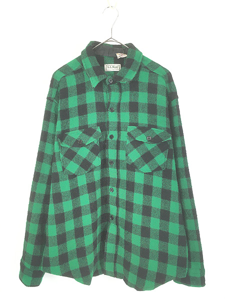 古着 80s LL Bean ブラック × グリーン ブロック チェック ウール シャツ XL位Shirts