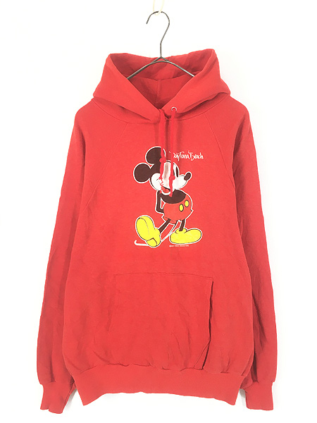 古着 80s USA製 Disney Mickey ミッキー 「Day Tona Beach」 スウェット パーカー LSweat-Parka