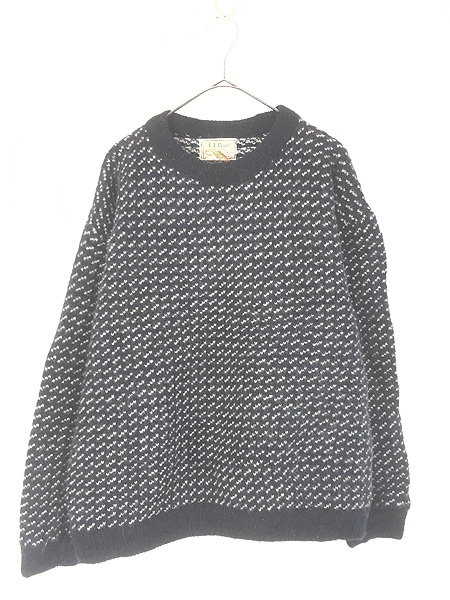 古着 80s ノルウェー製 LL Bean ネイビー×ホワイト バーズアイ ヘビー ウール ニット セーター XLKnit-Sweater