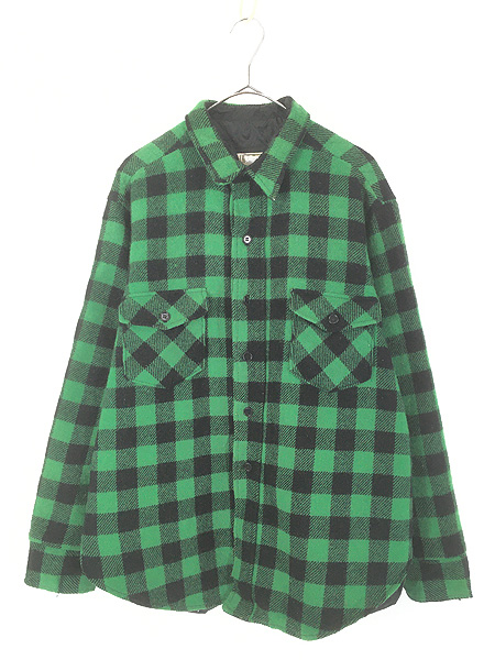 古着 80s USA製 LL Bean ブラック × グリーン ブロック チェック パデッド ウール シャツ ジャケット LShirts