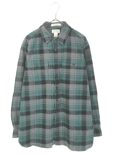古着 00s LL Bean 「Chamois Cloth」 好配色 エメラルド チェック シャモアクロス フランネル シャツ ネルシャツ L-RShirts