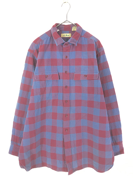 古着 90s LL Bean 「Chamois Cloth」 ワイン × ブルー ブロック チェック シャモアクロス フランネル シャツ ネルシャツ LShirts