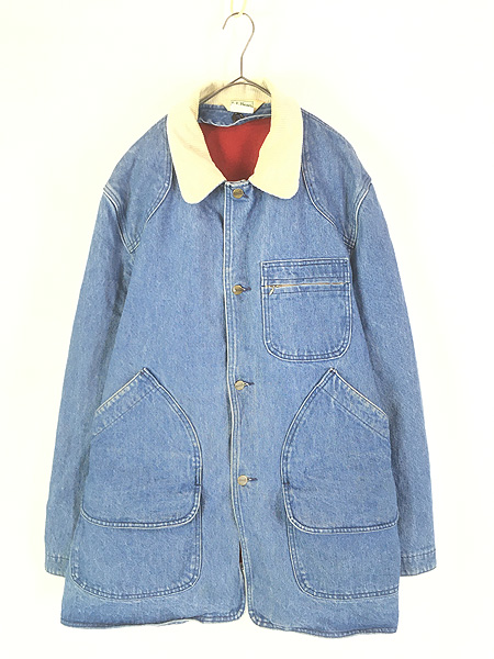 古着 80s LL Bean 名作 ブルー デニム ハンティング カバーオール ジャケット ライナー付 XL位Jacket