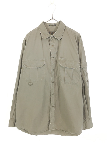 古着 80s Eddie Bauer 「Rufton Twill」 コットンサテン 2way アウトドア シャツ LShirts