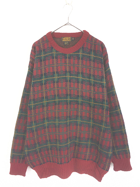 古着 80s USA製 Eddie Bauer タータン チェック ローゲージ ウール ニット セーター MKnit-Sweater