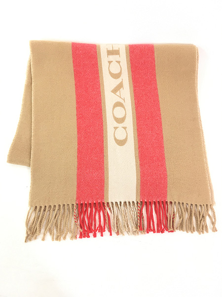雑貨 古着 Italy製 COACH ストライプ ロゴ デザイン ウール マフラー ストール 大判Muffler