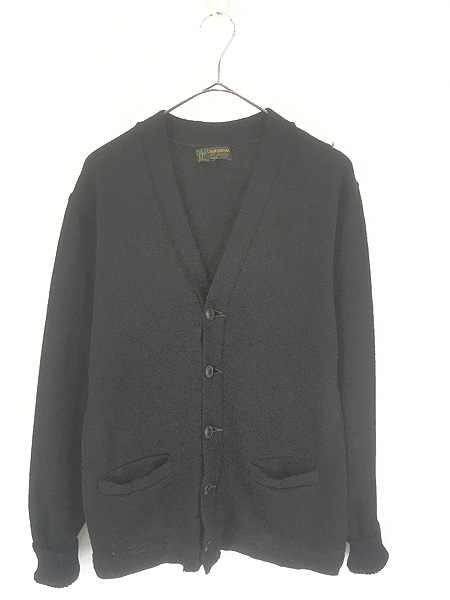 古着 50s California All Weather ローゲージ ウール ニット アワード レタード カーディガン ブラック!! L位Knit-Cardigan