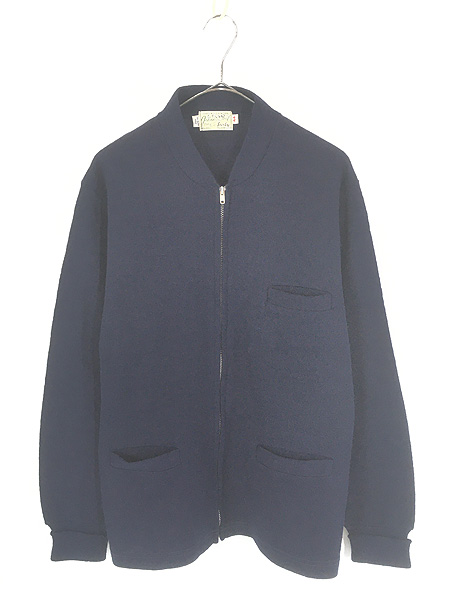 古着 60s Sarby Johnny Coat エルボーパッチ フルジップ ウール ニット ワーク カーディガン 44Knit-Cardigan