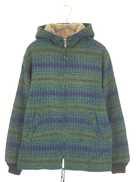 古着 60s USA製 Fox Knapp サイケデリック パターン ボア ライナー ヘビー ウール パーカー フーデッド ジャケット MJacket