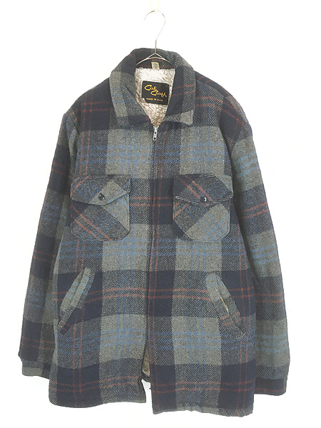 古着 80s USA製 Cal Craft ブルー チェック ボア ライナー フルジップ ヘビー ウール カバーオール ジャケット L LongJacket