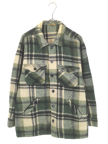 古着 60s Deacon Brothers 好配色 グリーン チェック ヘビー モヘア ウール カバーオール ジャケット XL位Jacket