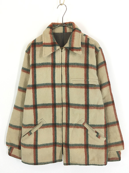 古着 50s CROWN スプリング ジッパー 好配色 チェック ヘビー ウール デトロイト ワーク ジャケット L位Jacket