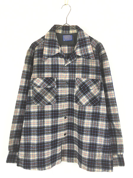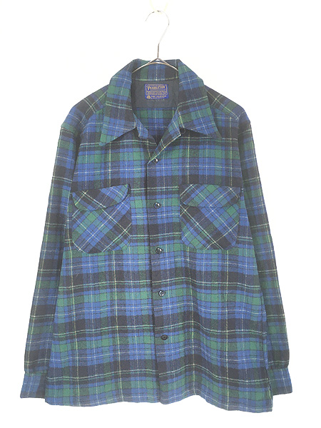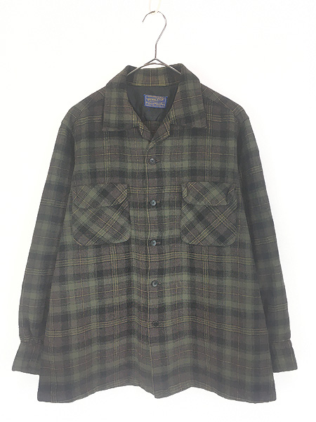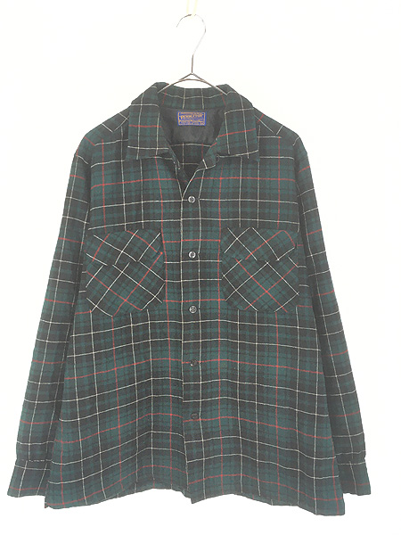 古着 60s Pendleton ブラックウォッチ チェック 開襟 ボックス ウール ボード シャツ MShirts