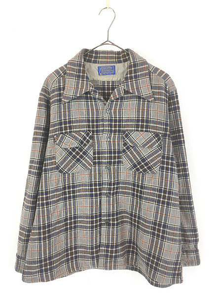 古着 70s USA製 Pendleton グレー タータン チェック 開襟 ボックス ウール ボード シャツ XLShirts