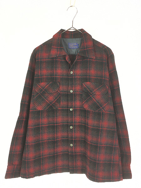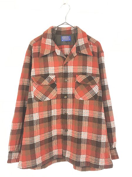古着 60s Pendleton ベークライトボタン 好配色 レッド × ブラック チェック 開襟 ボックス ウール ボード シャツ MShirts