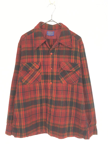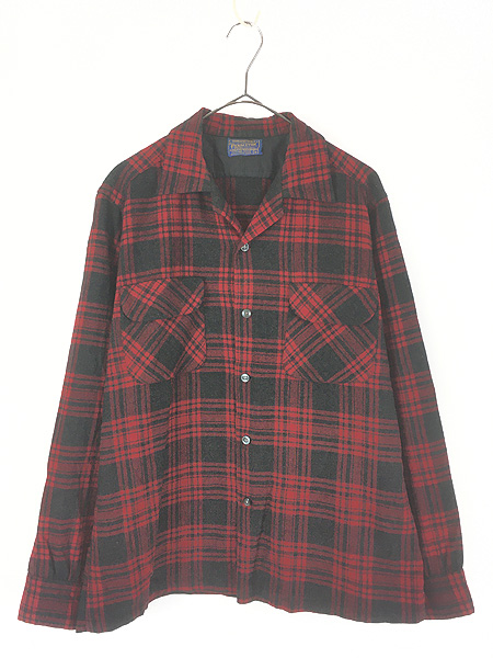 古着 60s Pendleton レッド × ブラック バッファロー チェック 開襟 ボックス ウール ボード シャツ MShirts