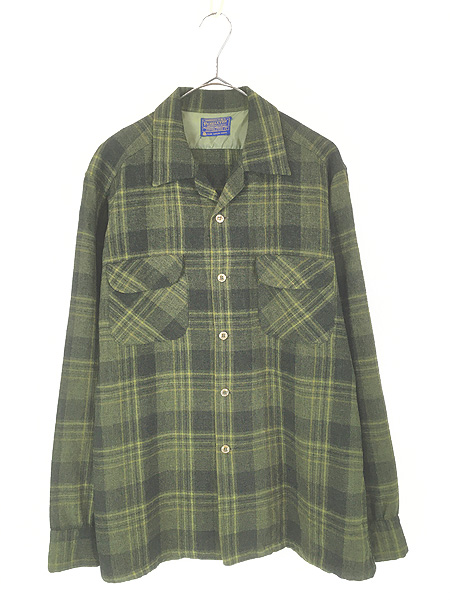 古着 60s Pendleton ベークライトボタン ダーク チェック 開襟 ボックス ウール ボード シャツ LShirts