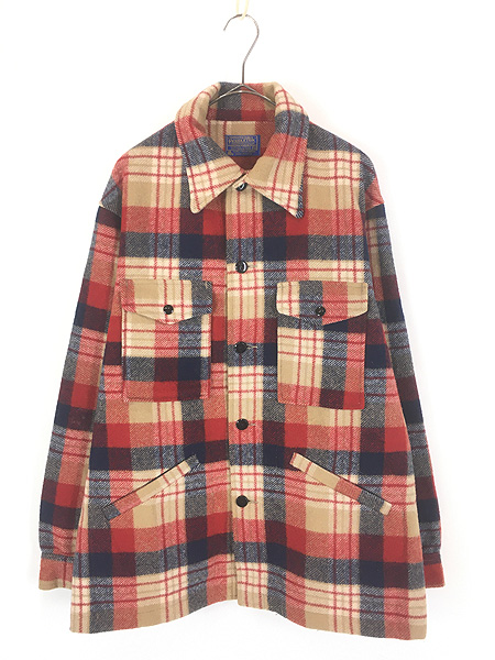 古着 70s USA製 Pendleton レッド × ネイビー チェック メルトン ウール マッキーノ ジャケット LJacket